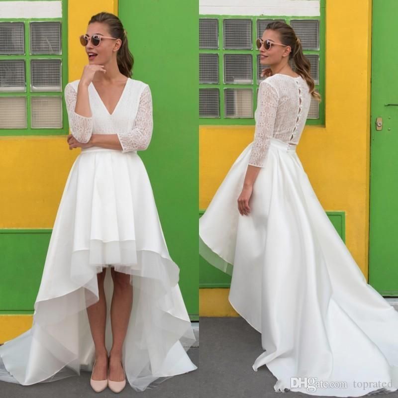 Cheap White Beach Wedding Dresses High Low One Shoulder ... from www.dhresource.com From traditional to modern to boho, with jumpsuits in between! If you are between sizes, please choose the smaller size, please refer to the size chart in left product description picture. Can be used as long sleeve wedding dress,chiffon beach wedding dress for bride 2020,bohemian wedding dress,lace wedding dress.all you need to do is dream.